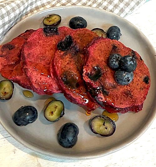 Kid-friendly, vegan & naturally sweetened, discover these vibrant Beet and Blueberry Mini Pancakes. Perfect for toddlers and grown-up snackers! Vegan, oil-free, egg-free, and naturally sweetened with applesauce. A healthy, fun way to enjoy hidden veggies!