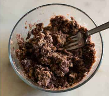Mash the black beans with fork or potato masher. You can also use a food processor or blender to break up the beans. You don't want to puree them. You want enough texture and creaminess to bind things together with a few of the black beans somewhat whole for presentation. Transfer to a mixing bowl.