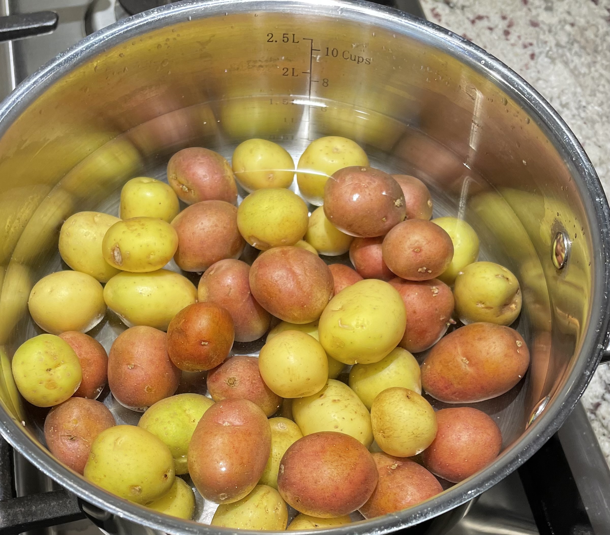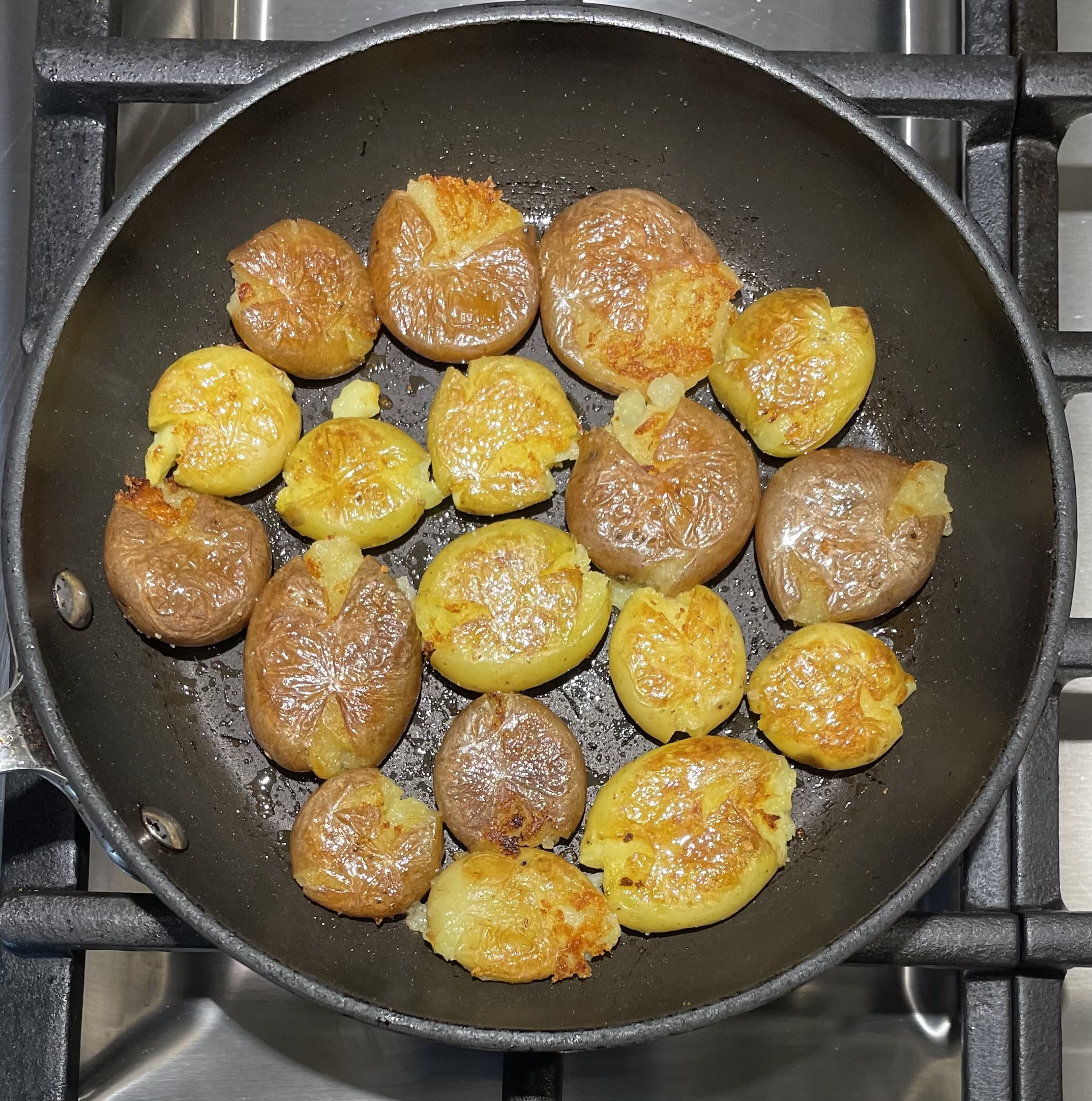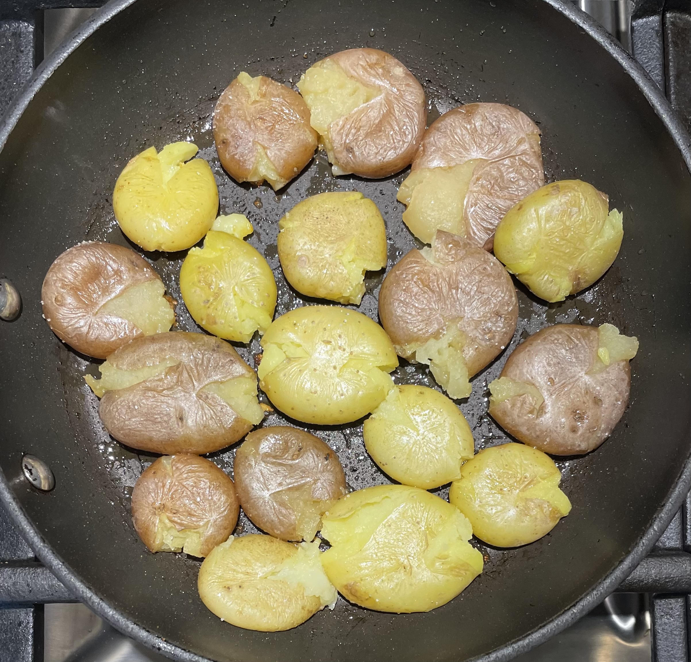 Once done, drain. Cool, then place in airtight container or place in sealable bag in the refrigerator until ready to smashed and crisped.