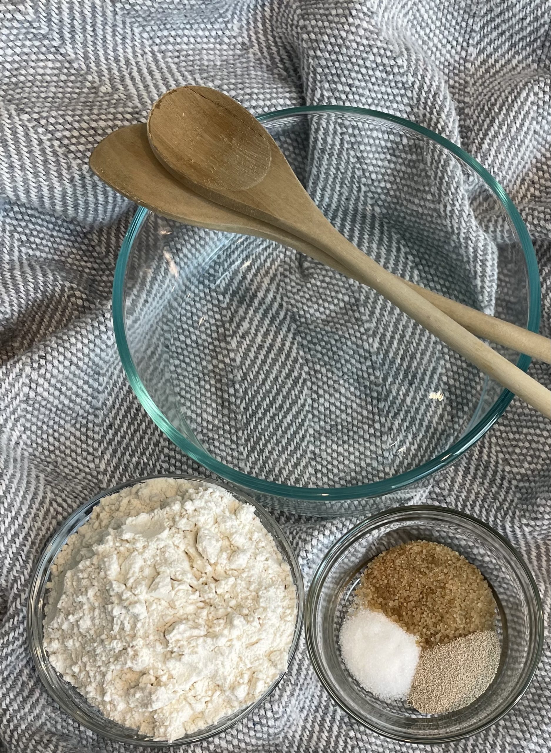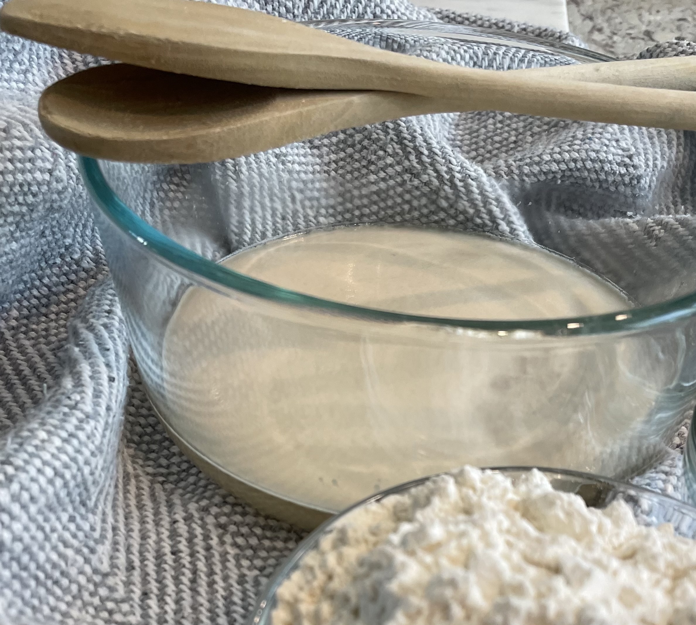 Once the yeast blooms, add the flour and combine.