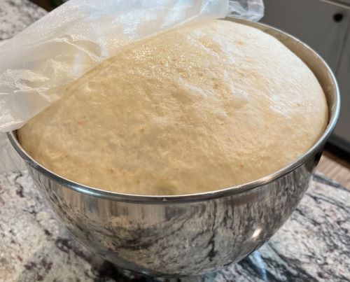 Cover the dough with a clean dish towel and leave it on the kitchen counter to rise until doubled in size,60 minutes. (If your kitchen is on the colder side, let the dough rise for 75 minutes.)
