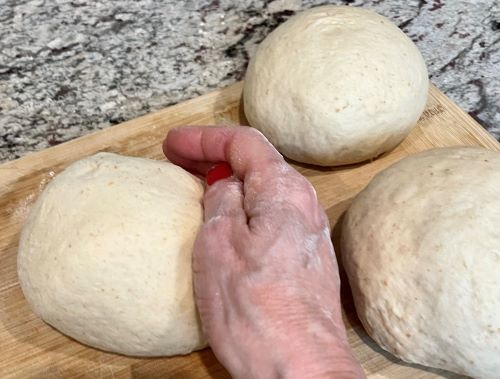 If you’re making this dough ahead of time you can refrigerate it for up to 5 days. This will help it to develop flavor and a more traditional texture. To do this, pour a small amount of olive oil onto your hands and run your hands around the outside of the dough to gently deflate it. Cover dough tightly with plastic wrap (or seal the bag) and refrigerate it for up to 5 days.