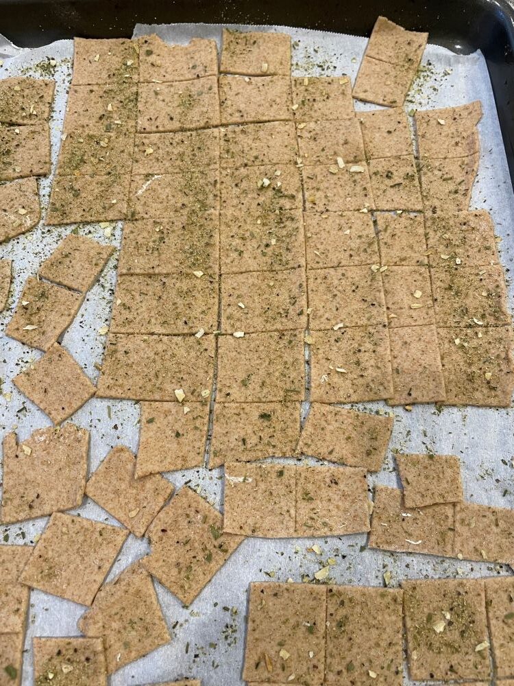 Bake the crackers for 10 minutes, rotate the pan, bake for another 4-5 minutes or until they start to brown around the edges. Depending on how thinly you’ve rolled them, they may be done closer to 20 minutes, so do check at the 15-minute mark.