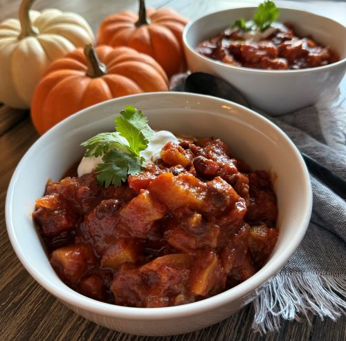 There are countless versions of Pumpkin Chili out there—many are loaded with ingredients, require lots of prep, or rely on ground meat as the base. I wanted something simpler, heartier, and fully plant-based. By swapping ground meat for roasted cubes of pumpkin, this chili gets a satisfying texture and a subtle sweetness that pairs beautifully with smoky spices. Best of all, once the pumpkin is roasted, you’re just 30 minutes away from a cozy bowl of comfort.
