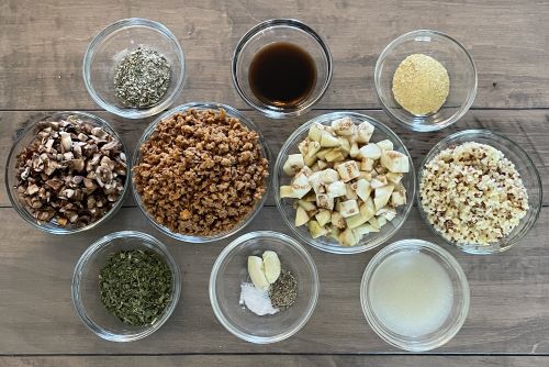 Add protein crumbles, breadcrumbs, parsley, Bragg’s Amino Liquids, nutritional yeast, Italian dried herbs, and aquafaba to bowl with browned vegetables and toss to combine. Using your hands, knead the mixture well until cohesive and sticky, about 1 minute.