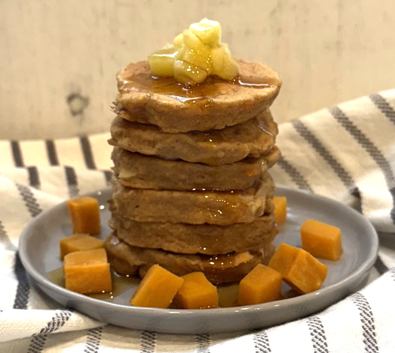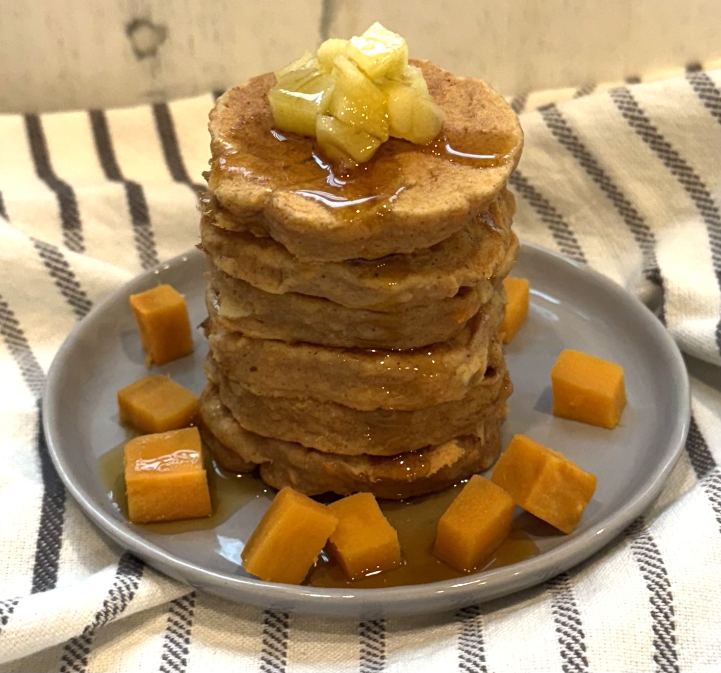These Sweet Potato Apple Protein Pancakes are a cozy, nutrient-packed twist on classic protein pancakes. Using thick, naturally sweet mashed sweet potatoes instead of pumpkin, they’re rich in fiber, plant-based protein, and subtle autumn spices—perfect for a satisfying breakfast, brunch, or post-workout treat.