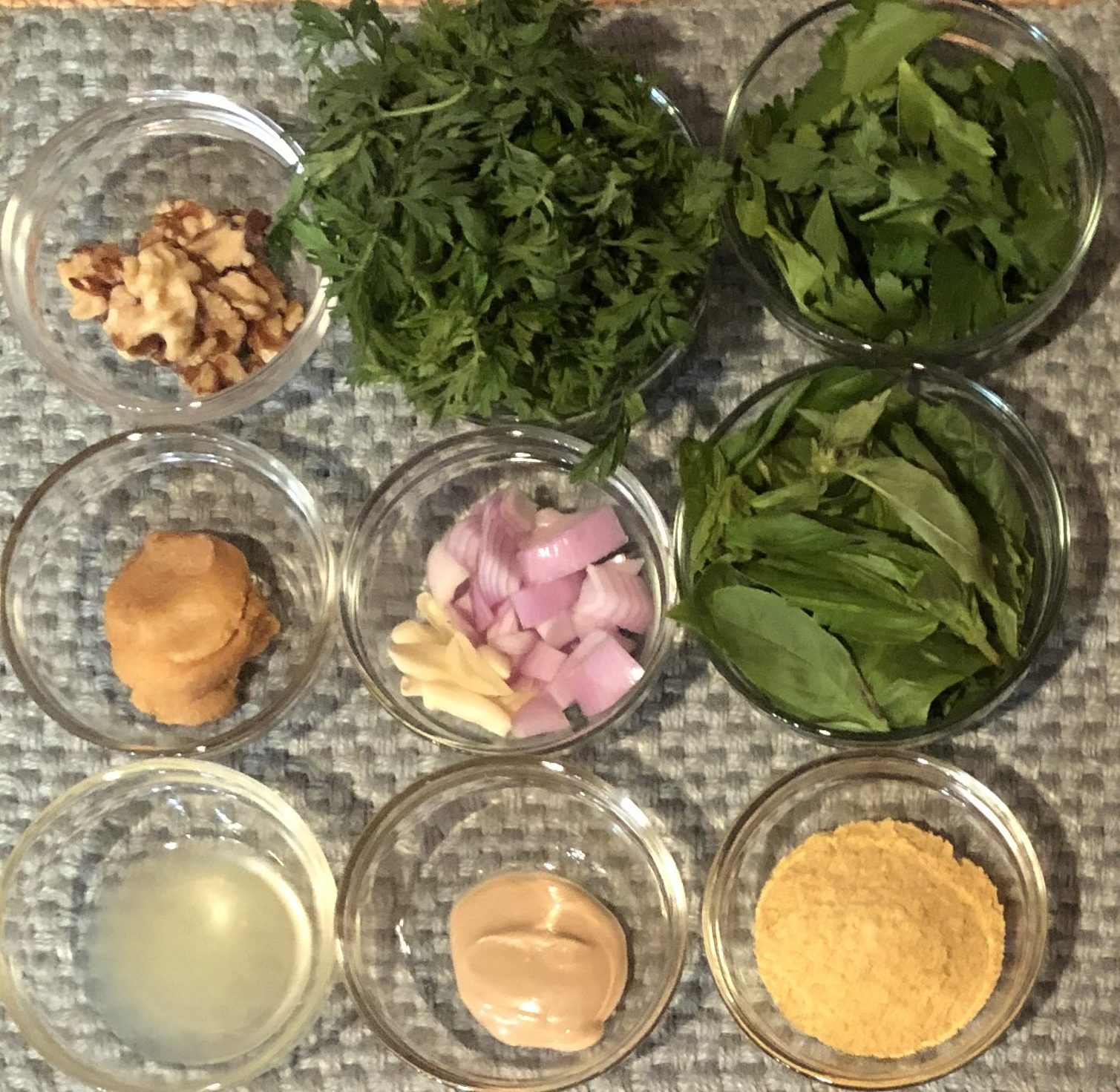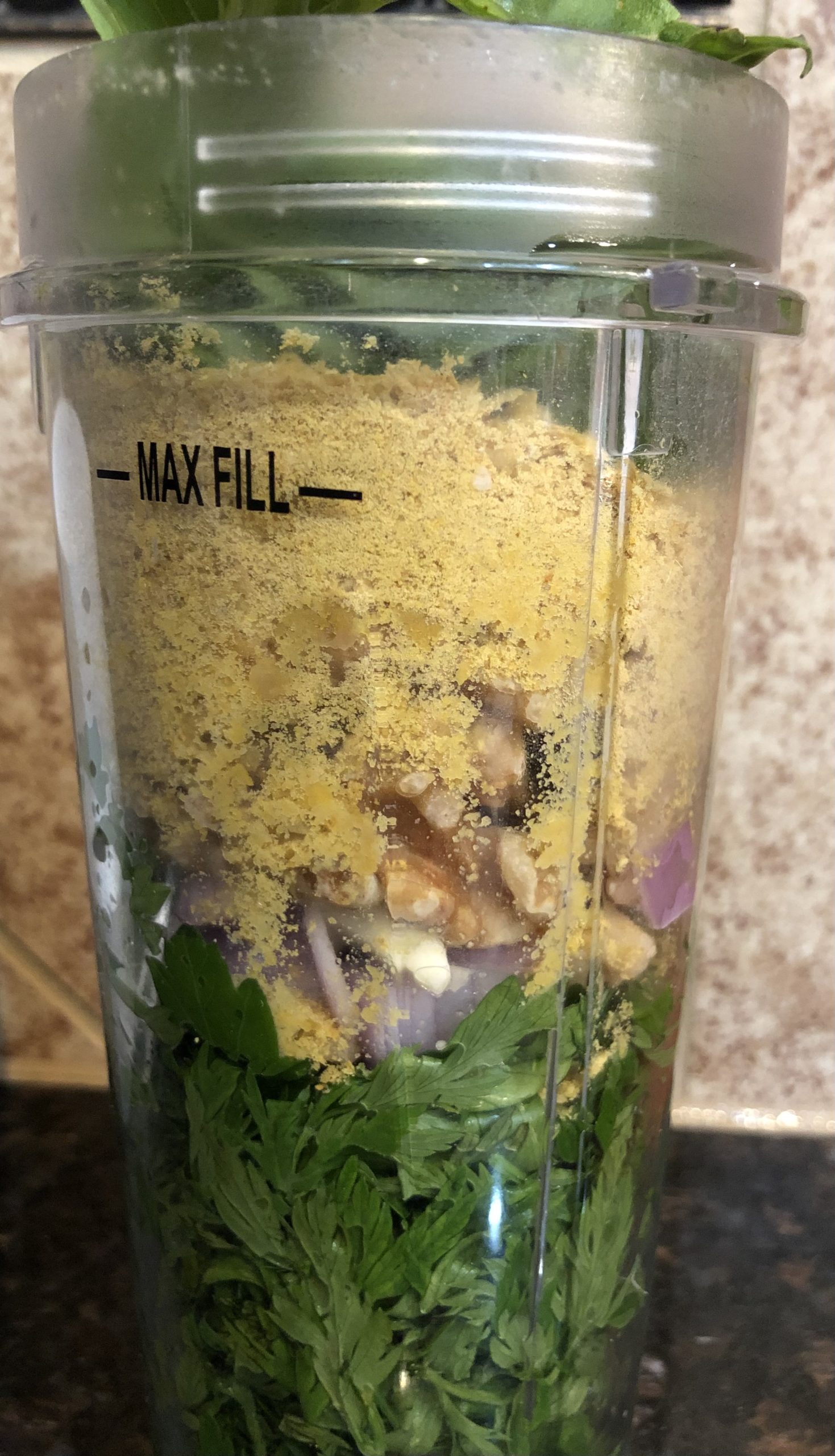Combine all ingredients in a low-medium speed CHOPPER for 2-3 minutes. If you don't have a mini chopper or don't want to clean an extra kitchen tool, you can finely hand chop ingredients prior to using the high-speed power blender to puree ingredients.You may find you need to add white wine or water, a tablespoon at a time, to help the blender along with all the other ingredients so that everything will mix together easily.