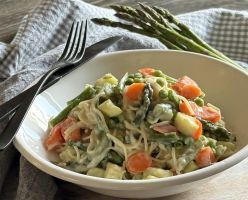 Add additional spring vegetables such as broccoli, mushrooms, onions, last with the pasta to avoid it getting too mushy.