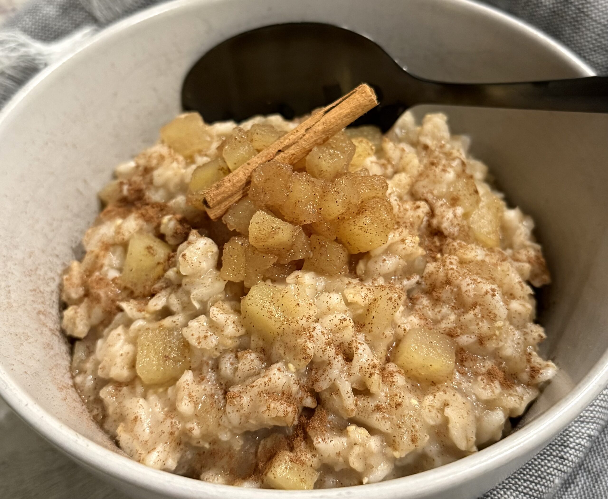 Let the oatmeal rest for 2–3 minutes. The apples will continue to soften and the oats will thicken.
