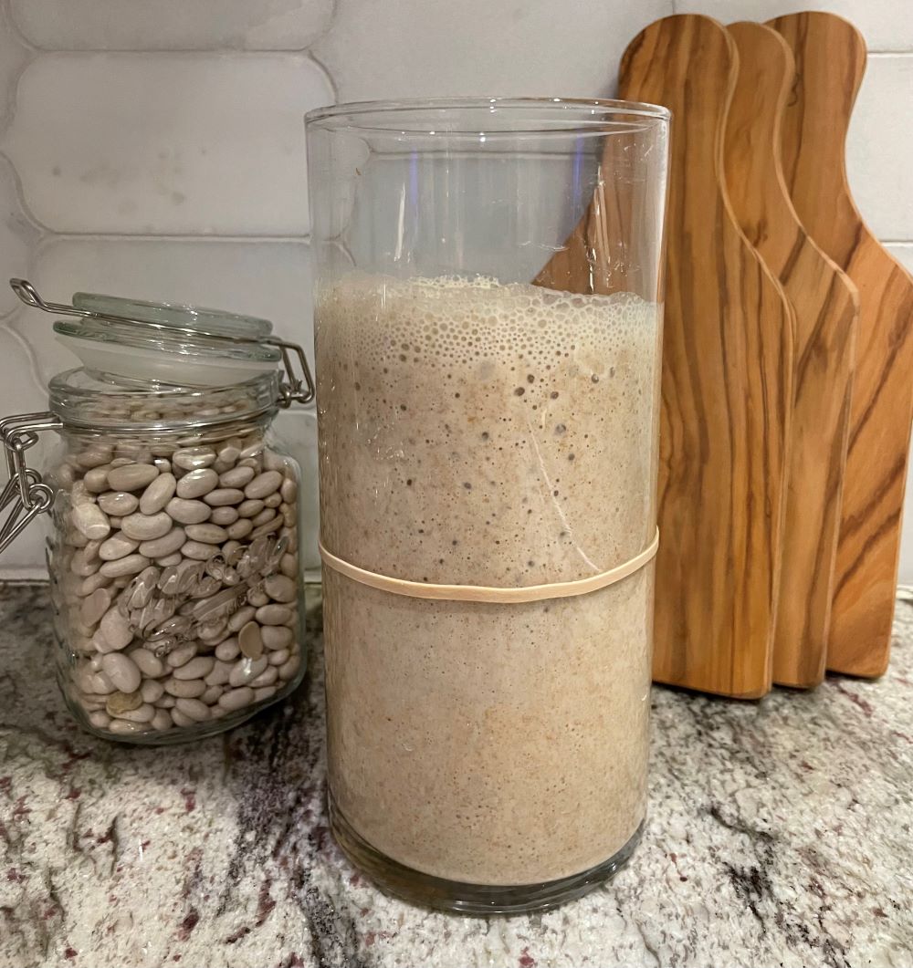 Your starter is ready when it has doubled in size with plenty of bubbles on the surface and throughout the culture.