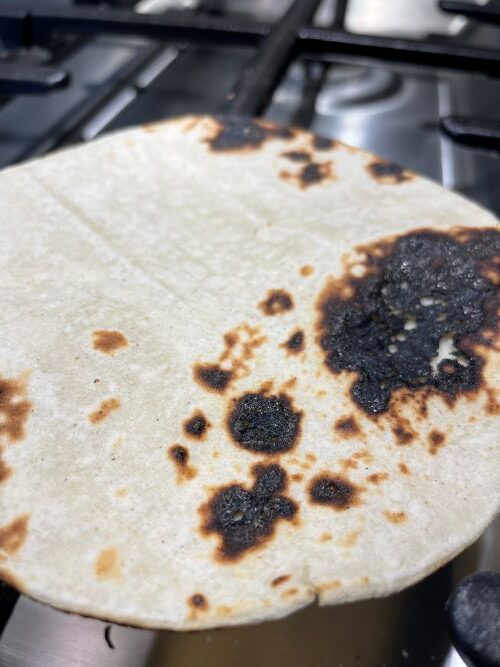 Continue heating each tortilla individually until you have as many as you need.This method gives the tortillas a smoky flavor and makes them more pliable for assembling tacos or serving alongside your favorite Mexican dishes. Enjoy your freshly cooked corn tortillas.Depending on your preference, you can adjust the heating time to achieve more or less charred spots. Once heated, remove the tortilla from the flame and immediately wrap it in a clean kitchen towel or place it in a tortilla warmer to keep it warm and pliable.