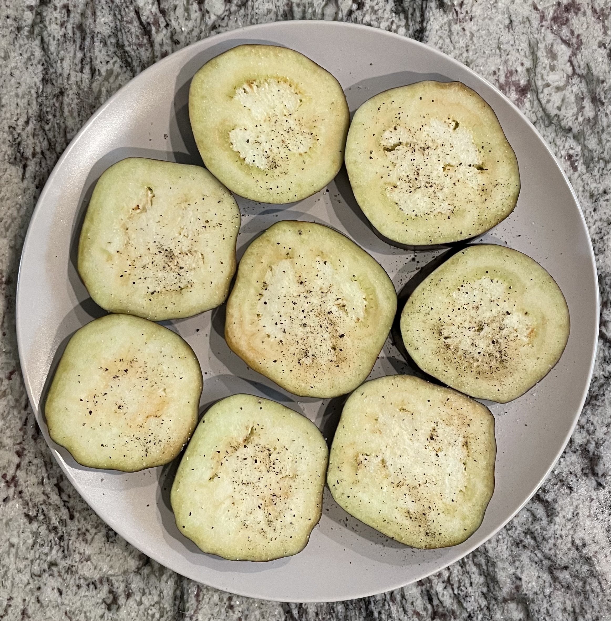 Cut eggplant slices the same thickness, 1/2-3/4 inch.