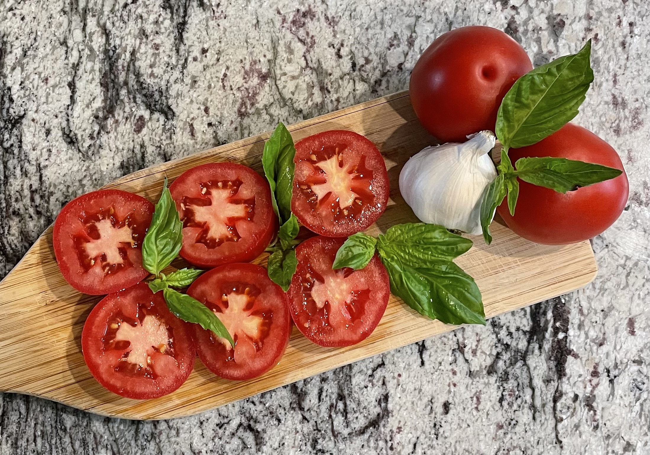 Cut the tomatoes into 1/2-inch slices. Sprinkle topping evenly among the tomato slices.